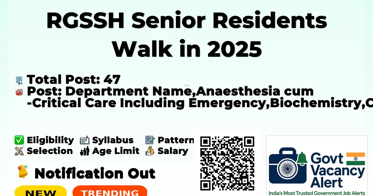 Rajiv Gandhi Super Speciality Hospital (RGSSH) Recruitment 2025 for 47 posts of Senior Residents. Candidates with MBBS, DNB, PG Diploma, MS/MD, M.Ch Can attend the walkin. The Walk-in on 30-10-2025. For detailed information please visit RGSSH official website, health.delhi.gov.in.