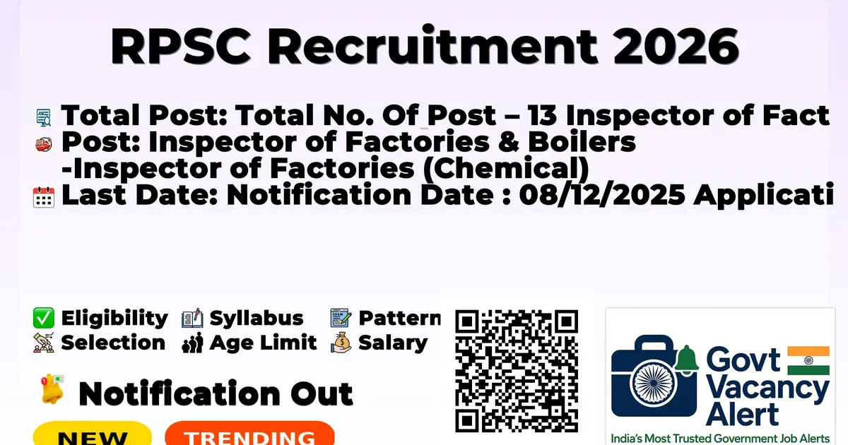 Last Date: Notification Date : 08/12/2025 Application Start : 14/12/2025 Last Date Apply Online : 12/01/2026 (up to 12:00 midnight) Correction Date : As Per Schedule Admit Card : Notify Soon Exam Date : Notify Soon Result Date : Notify Soon