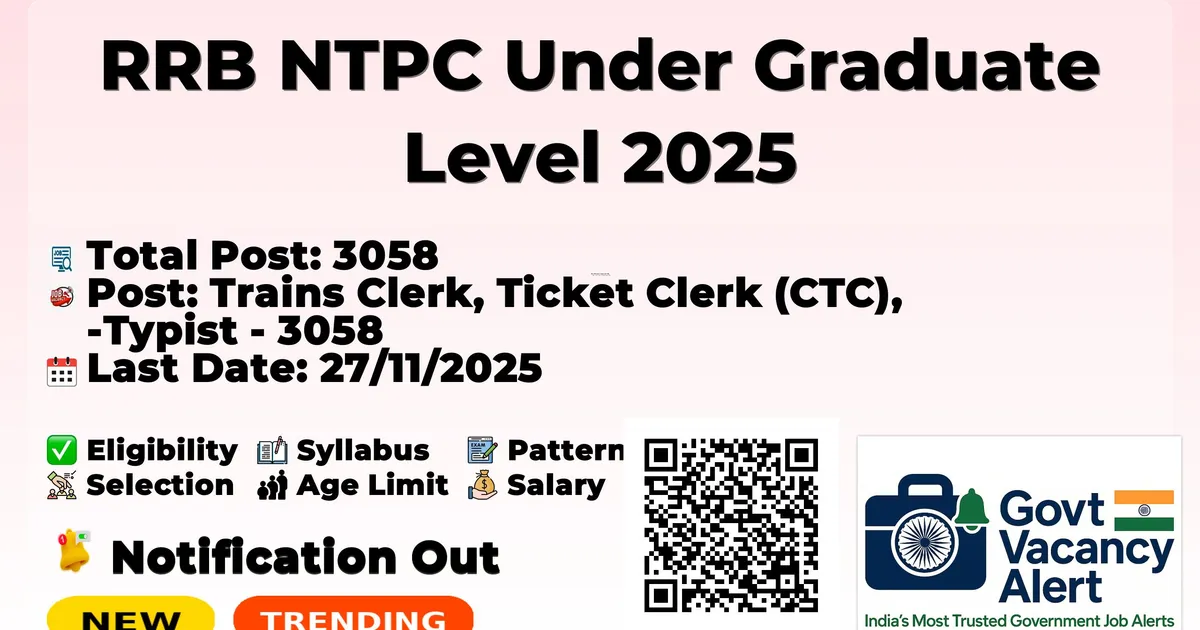 ➢ Interested and eligible candidates should complete the RRB NTPC Undergraduate Level Posts online application form exclusively through the official RRB Apply Portal at www.rrbapply.gov.in, starting from 28th October 2025.