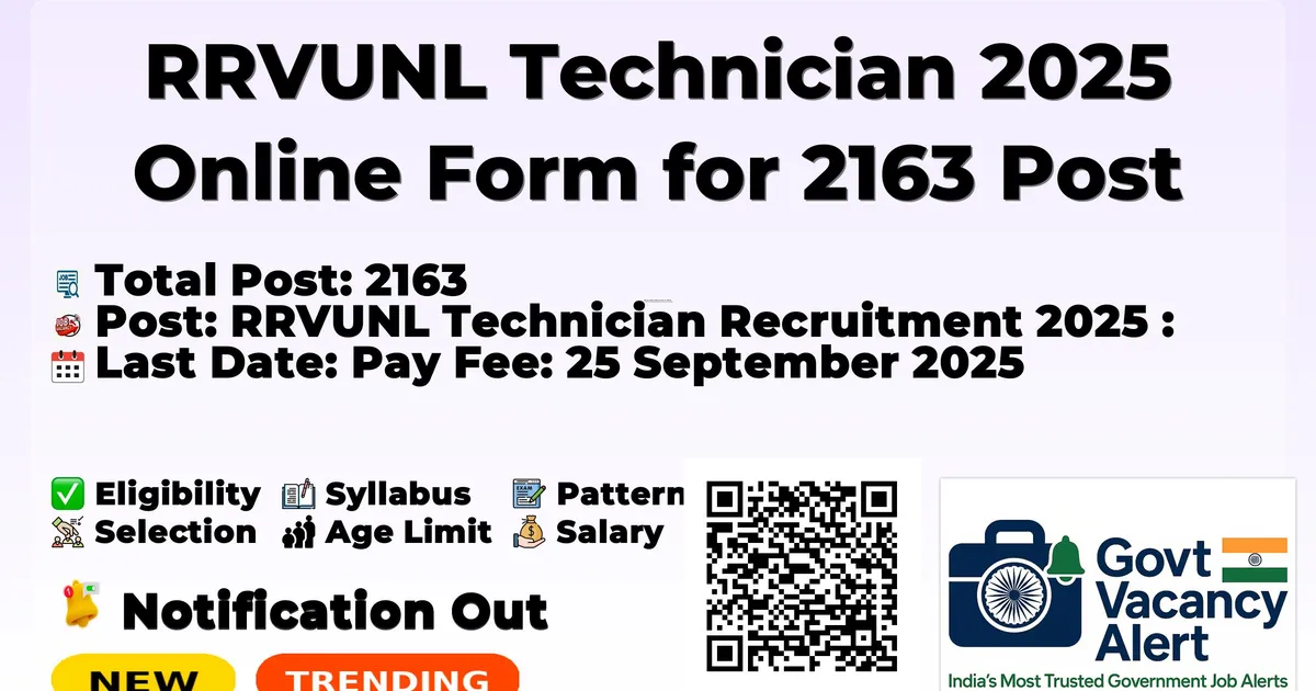 RRVUNL Technician Recruitment 2025 : Vacancy Details Total 2163 Post