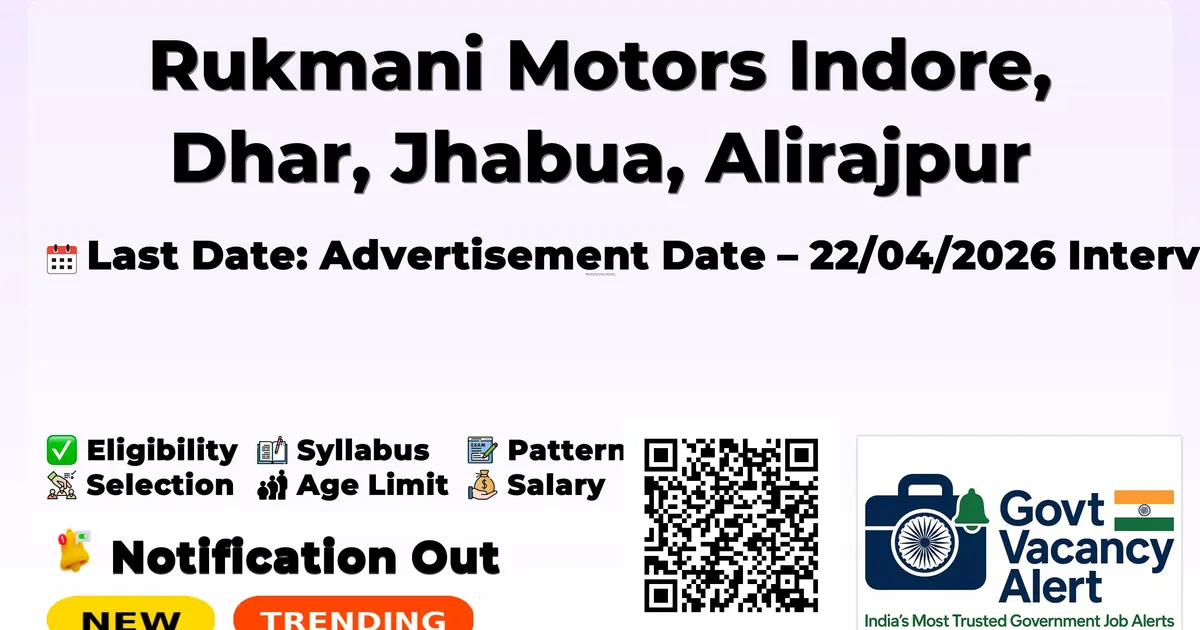 Rukmani Motors Indore, Dhar, Jhabua, Alirajpur Job’s 2026