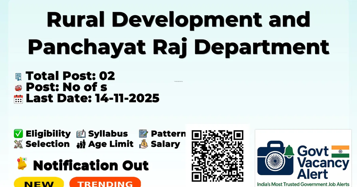 Company Name Rural Development and Panchayat Raj Department (TNRD) Post Name Jeep Driver No of Posts 02 Pay Matrix Rs.19500 - 71900 Qualification 8TH Age Limit 18 to 42 years Start Date for Apply 05-11-2025 Last Date for Apply 14-11-2025 Official Website ariyalur.nic.in
