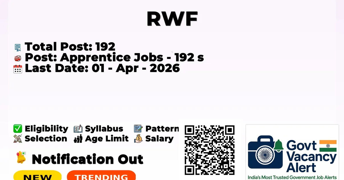Rail Wheel Factory hasdeclared the official notification for 2026. To fill up the vacancies for Apprentice Jobs. Candidates who have qualified in the 10th Pass, ITI can grab this chance and apply for the Rail Wheel Factory Jobs 2026. Here we include the age limit, selection process, salary structure, education details, application fee, and how to apply for these posts. Interested candidates can apply before the lastdate of application.