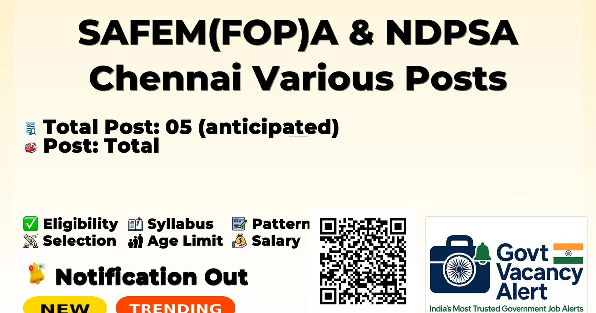 SAFEM(FOP)A & NDPSA Chennai Various Posts Deputation Recruitment 2026