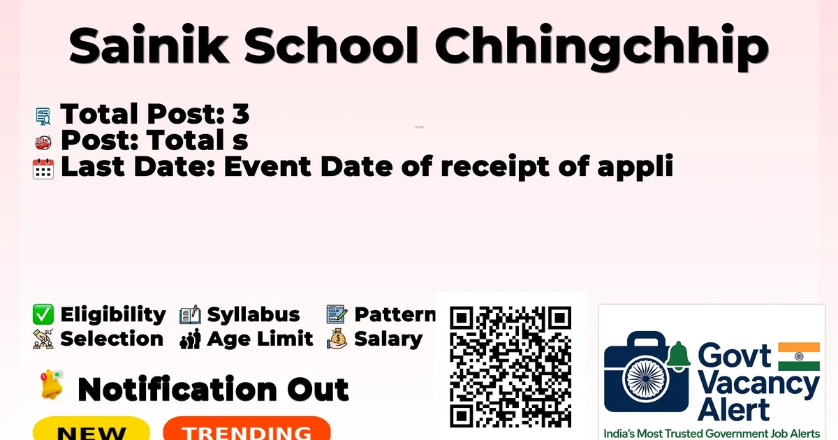 Candidates should download and read the Sainik School Chhingchhip Jobs 2026 notification PDF carefully to check vacancy details, eligibility, age limit, and application instructions. The notification also includes important dates and selection process details. The direct download link is available in the Important Links section below.