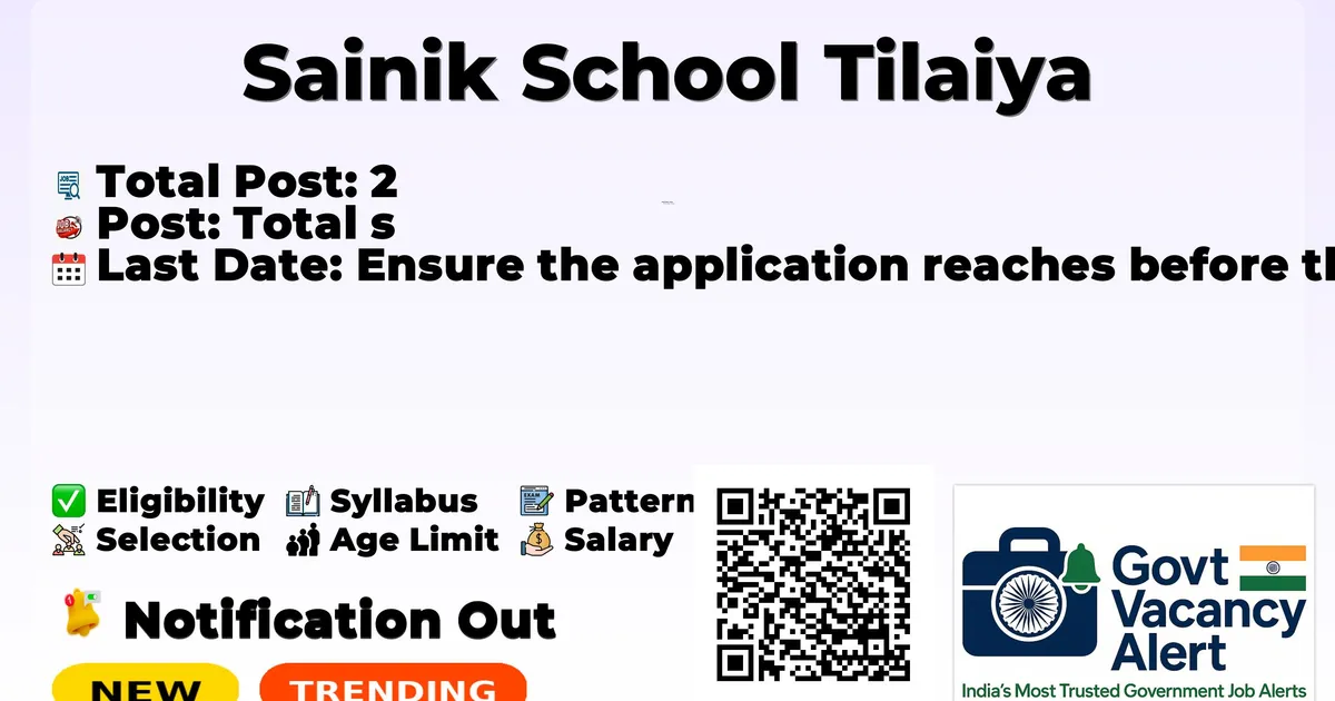 Candidates should download and read the Sainik School Tilaiya Jobs 2026 notification PDF carefully to check vacancy details, eligibility, age limit, and application instructions. The notification also includes important dates and selection process details. The direct download link is available in the Important Links section below.