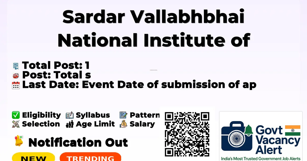 Sardar Vallabhbhai National Institute of Technology, Surat (SVNIT) Recruitment 2026: Sardar Vallabhbhai National Institute of Technology, Surat has released the official notification for 1 Research Associate-I / Project Associate-I posts, inviting applications from eligible candidates. This recruitment provides an excellent opportunity for candidates seeking research jobs.