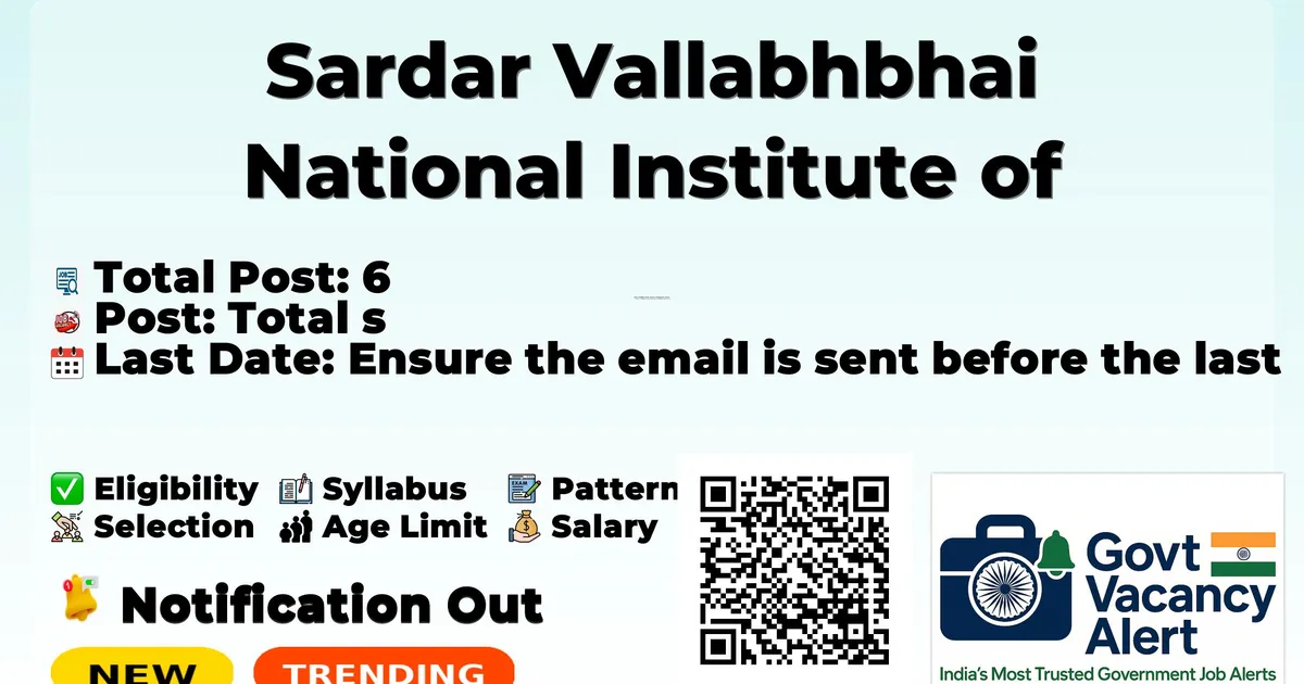 Sardar Vallabhbhai National Institute of Technology Surat (SVNIT) Research Personnel Notification 2026 has been released on April 2026 on the official website https://www.svnit.ac.in . A total of 6 vacancies have been announced through the SVNIT Research Personnel Recruitment 2026.
