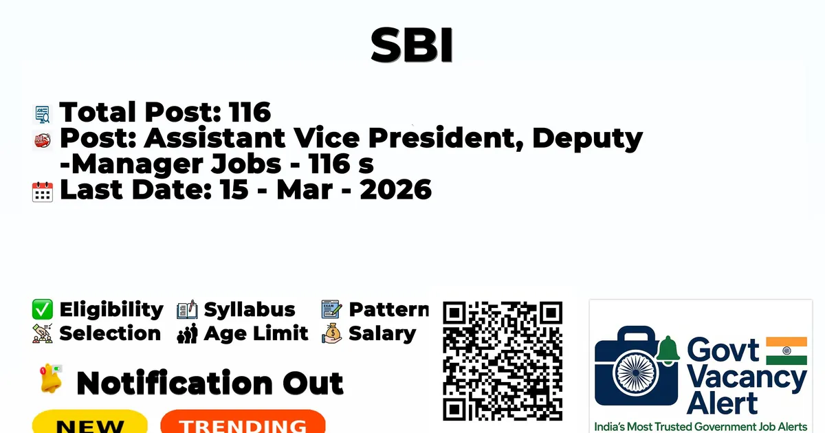 The State Bank of India (SBI) has officially released the notification to fill the vacancies of 116 Assistant Vice President and Deputy Manager Jobs. Interested and eligibile candidates can use this opportunity to apply for these posts before the last date of application. Candidates who have completed their B.E./B. Tech, M.E./M. Tech, B.Sc., M.Sc., CA can apply for the SBI Notification 2026. The interested applicants can apply in online mode. Here we have mentioned the education details, age limit, selection process, application fee, salary, and how to apply for these posts before the deadline. The application dates have already begun.