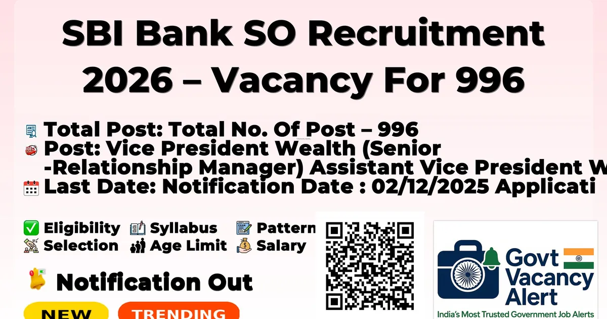 SBI Bank SO Recruitment 2026 – Vacancy For 996 Posts
