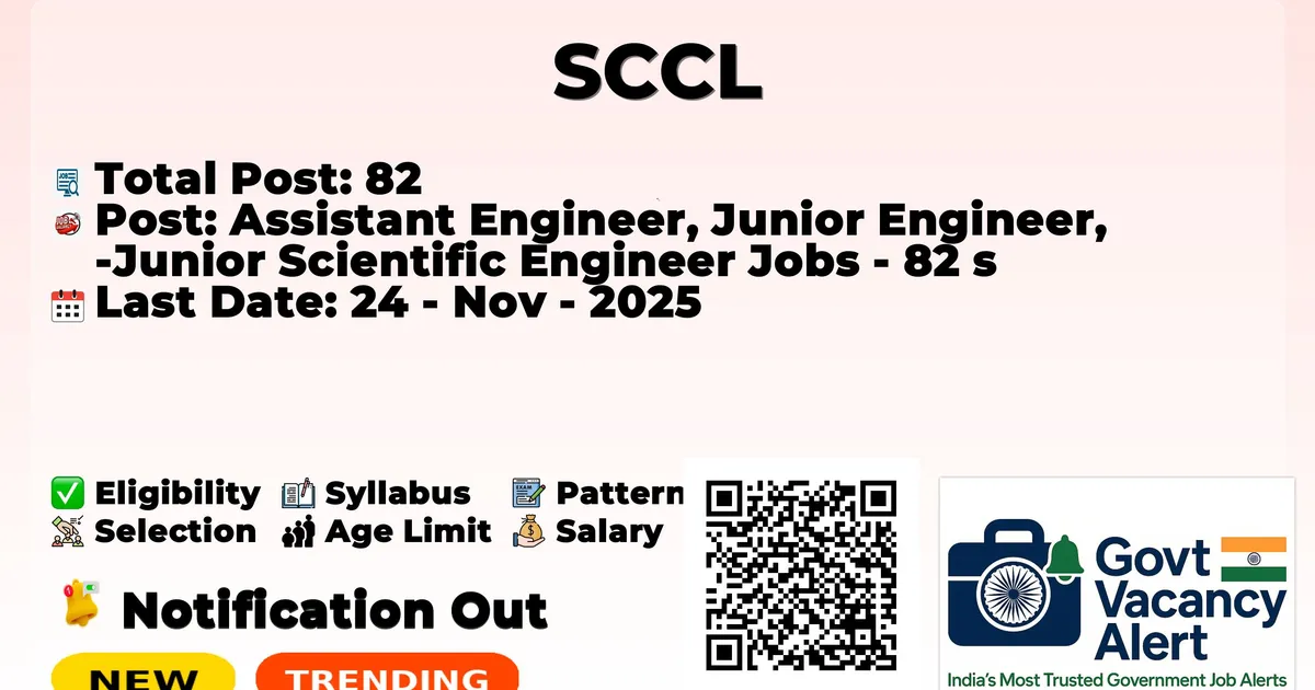 The Singareni Collieries Company Limited (SCCL) has officially released the notification to fill the vacancies of 82 Assistant Engineer, Junior Engineer, and Junior Scientific Engineer Posts. Interested and eligibile candidates can use this opportunity to apply for these posts before the last date of application. Candidates who have completed their Diploma, B.E./B. Tech in Mechanical, Electrical, and Civil Engineering, B.Sc., and M.Sc., can apply for the SCCL Recruitment 2025. The interested applicants can apply in online mode. Here we have mentioned the education details, age limit, selection process, application fee, salary, and how to apply for these posts before the deadline. The application dates have already begun.