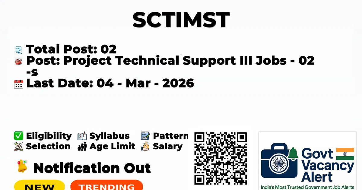 Sree Chitra Tirunal Institute for Medical Sciences and Technology, Trivandrum (SCTIMST) has released an official notification for a Walk-in Interview for 02 Project Technical Support III Posts. Those candidates who have qualified in the B.Sc Nursing, Post Graduation can grab this chance and apply for the SCTIMST Recruitment 2026. Here, we included more details about the age limit, selection process, salary structure, education details, application fee, and how to apply for these posts.