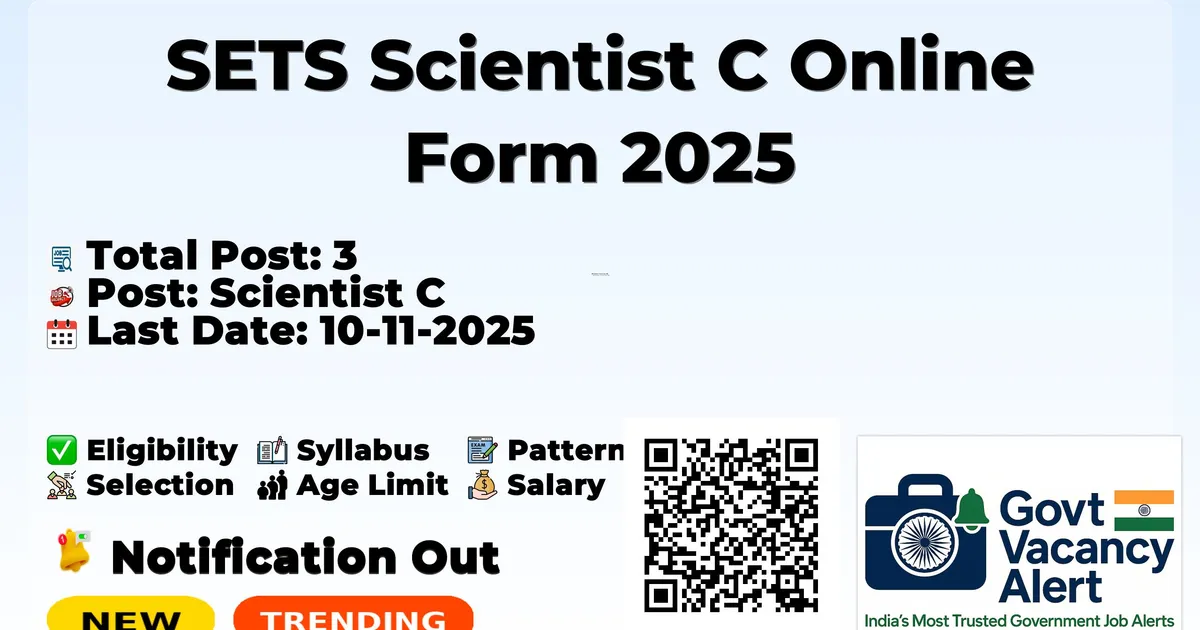 The SETS Scientist C Recruitment 2025 Notification PDF has been released on 13-09-2025 at setsindia.in. Check the complete job details, vacancy, age limit, application fee, selection process and how to apply from the article. You can Check all Latest Sarkari Result Updates of All Central Government Jobs and State Government Jobs.
