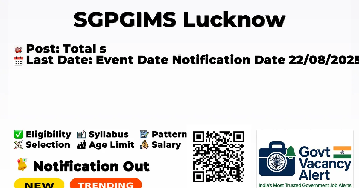 Sanjay Gandhi Postgraduate Institute of Medical Sciences (SGPGIMS) has released an official notification for the recruitment of Junior Research Assistant Posts. Interested and eligible candidates can apply Offline through the official SGPGIMS website. The last date to submit the application form is 28-11-2025. In this article, you’ll find the SGPGIMS Junior Research Assistant Posts recruitment details, including eligibility criteria, age limit, salary structure, selection process, application steps, and direct links to the official notification and Offline application form.