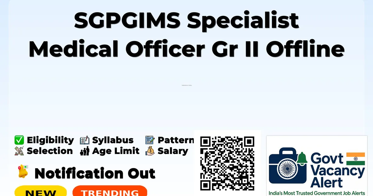 Sanjay Gandhi Post Graduate Institute of Medical Sciences (SGPGIMS) has released an official notification for the recruitment of 02 Specialist Medical Officer Gr II Posts. Interested and eligible candidates can apply Offline through the official SGPGIMS website. The last date to submit the application form is 15-11-2025. In this article, you’ll find the SGPGIMS Specialist Medical Officer Gr II Posts recruitment details, including eligibility criteria, age limit, salary structure, selection process, application steps, and direct links to the official notification and Offline application form.