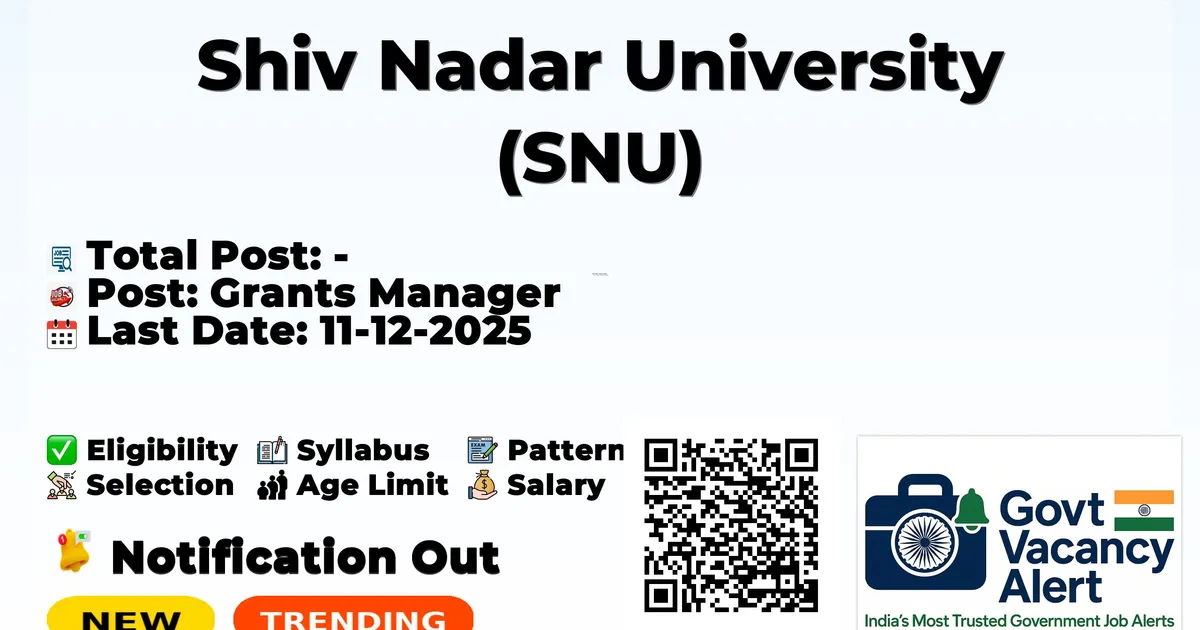 Company Name Shiv Nadar University (SNU) Post Name Grants Manager No of Posts - Qualification Any Masters Degree, M.Phil/Ph.D Last Date for Apply Online 11-12-2025 Official Website snu.edu.in