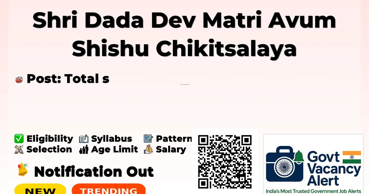 Company Name Shri Dada Dev Matri Avum Shishu Chikitsalaya (SDDMASC) Post Name Senior Resident Number of Posts 16 Advertisement Number F. 2 (14)/751/Rectt/SR/Interview/2026/Vol-X/2026/7272 Salary Rs. 67700-208700 (Level 11) Qualification Post Graduate Degree/Diploma/DNB in concerned specialty Age Limit Maximum 45 years (with applicable relaxation) Notification Date 18 February 2026 Walk-in Interview Date 25 February 2026 Apply Mode Walk-in Job Type Contract