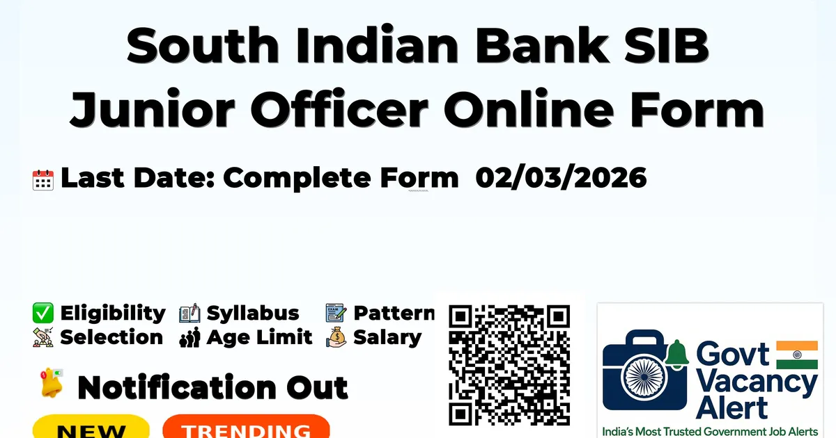 South Indian Bank SIB Junior Officer Online Form 2026 — Latest Government Job