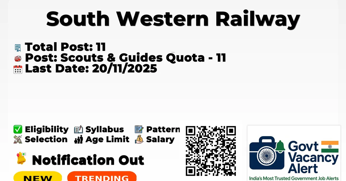 SWR Scouts and Guides Quota Indicative Notification Click Here SWR Scouts and Guides Quota Notification 2024 Notification Pdf (Old) SWR Scouts and Guides Quota Online Application Form Available from 21/10/2025 Latest Railway Jobs Railway Jobs List Join Ind Govt Jobs Alert Channel Telegram | WhatsApp | X | Facebook | Instagram