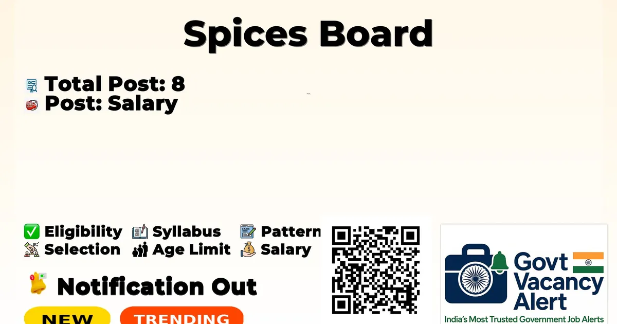 Spices Board Recruitment 2026: Spices Board is conducting a Walk-in Interview for 8 Trainee Analyst, Executive and More posts. This recruitment provides an excellent opportunity for eligible candidates to attend the interview directly without any prior online application.The Walk-in Interview is scheduled on 30-04-2026. Candidates are strongly advised to report at the venue with all required documents well before the scheduled time. Below, you can find complete details of Trainee Analyst, Executive and More Walk-in Recruitment 2026, including vacancy breakdown, eligibility, age limit, salary, walk-in schedule, venue, and important links. Advertisement Company Name Spices Board Post Name Project Fellow / Project Assistant / Trainee Analyst / Executive (SRD) No of Posts 8 Advt No 56/2025, 55/2025, 46/2025, 51/2025, 50/2025 Salary Rs. 20,000 - Rs. 25,000 Per Month Qualification B.Sc., M.Sc., Any Degree Walk-in Date 30 April 2026 Apply Mode Walk-in Job Type Contract Candidates who are interested in applying for the Spices Board Recruitment 2026 should first download and carefully read the official notification PDF. The notification contains complete details about vacancy distribution, eligibility criteria, age limit, stipend/salary, selection process, important dates, and application instructions. Reading the official document is important to ensure that you meet all requirements before submitting the application form. Download Spices Board Job 2026 Notification PDF Post Name Total Posts Project Fellow 1 Project Assistant 2 Trainee Analyst (Chemistry) 2 Trainee Analyst (Microbiology) 1 Executive (Sample Receipt Desk - SRD) 2 Total 8 Trending Govt Jobs SSB Odisha Junior Assistant and Junior Clerk Online Form 2026 IDBI Bank Junior Assistant Manager Online Form 2026 AIIMS NORCET 10 Online Form 2026 HPCL 731 Engineers, JEA and More Online Form 2026 Indian Navy Agniveer SSR, MR & SSR (Medical) Online Form 2026 Project Fellow: M.Sc. in Plant Nematology / Sericulture / Agricultural Chemicals / Food and Industrial Microbiology / Agricultural Chemistry Project Assistant: B.Sc. (Agriculture/Horticulture) OR M.Sc. (Botany / Microbiology / Pathology / Zoology) Trainee Analyst (Chemistry): B.Sc. with Chemistry / B.Sc. Chemistry Trainee Analyst (Microbiology): B.Sc. Microbiology Executive (Sample Receipt Desk - SRD): Any Degree + computer knowledge + 2 years experience as Trainee in SRD of Spices Board or similar in Govt. institutions Category Fee General/OBC Nil SC/ST Nil Please refer to the official notification for age limit details. Post Name Salary Project Fellow Rs. 21,000 fixed per month Project Assistant Rs. 25,000 per month Trainee Analyst (Chemistry) Rs. 20,000 per month Trainee Analyst (Microbiology) Rs. 20,000 per month Executive (Sample Receipt Desk - SRD) Rs. 25,000 fixed per month Event Date Notification Date 11 March 2026 Walk-in Test Date 30 April 2026 Walk-in Test Candidates who wish to attend the walk-in interview for Spices Board Various Posts Recruitment 2026 should follow the steps below. Read the official notification carefully before attending the interview. Candidates must report at the venue as per the reporting time mentioned in the notification. Carry all original documents along with one set of self-attested photocopies such as ID proof, educational certificates, experience certificates (if required), and category certificate (if applicable). Bring the duly filled application form if required in the notification. Verify eligibility criteria before attending the interview. Candidates are advised to reach the venue well in advance to complete registration formalities. Keep extra passport-size photographs for submission if required. Link Description Link Official Notification PDF (Trainee Analys) Click here Official Notification PDF (Executives) Click here Official Notification PDF (Trainee Analyst) Click here Official Notification PDF (Project Assistant) Click here Official Notification PDF (Project Fellow) Click here Official Website Click here