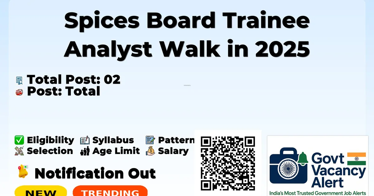 Spices Board Recruitment 2025 for 02 posts of Trainee Analyst. Candidates with B.Sc Can attend the walkin. The Walk-in on 03-12-2025. For detailed information please visit Spices Board official website, indianspices.com.