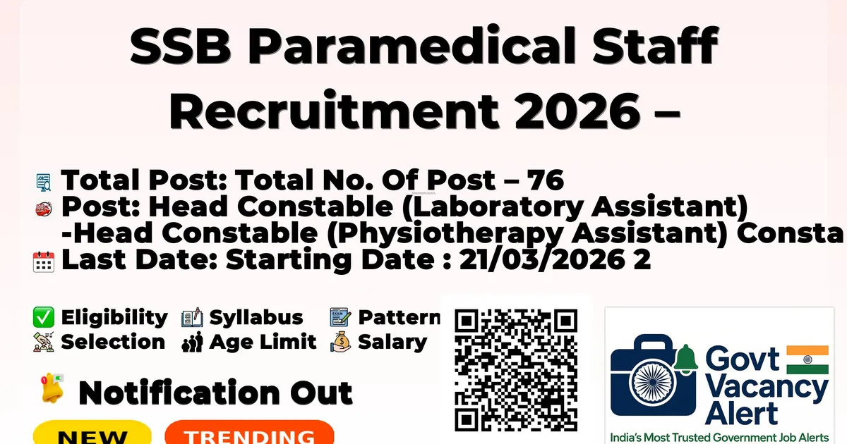 SSB Paramedical Staff Recruitment 2026 – Vacancy For 10th & 12th