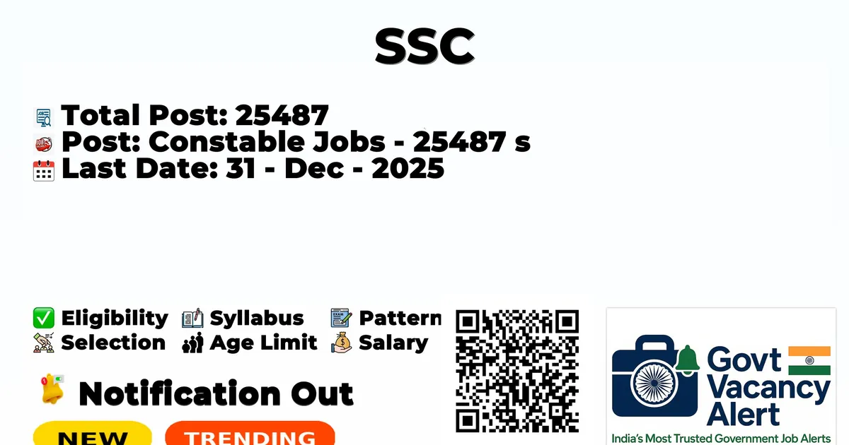The Staff Selection Commission (SSC) has officially released the notification to fill the vacancies of 25487 Constable (General Duty-GD) Posts. Interested and eligibile candidates can use this opportunity to apply for these posts before the last date of application. Candidates who have completed their Any Degree can apply for the SSC Notification 2025. The interested applicants can apply in online mode. Here we have mentioned the education details, age limit, selection process, application fee, salary, and how to apply for these posts before the deadline. The application dates have already begun.