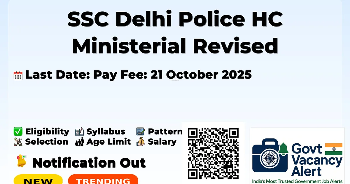 SSC Delhi Police HC Ministerial Revised Vacancy 2026 — Latest Government Job