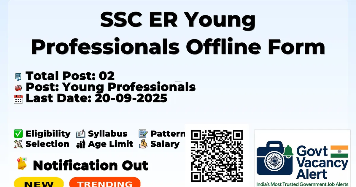 The Staff Selection Commission Eastern Region (SSC ER) Recruitment 2025 for 02 posts of Young Professionals. Candidates with BCA, B.Sc, B.Tech/B.E Can Apply Offline. The Offline application opens on 07-09-2025, and closes on 20-09-2025. The candidate shall apply Offline through SSC ER website, sscer.org.