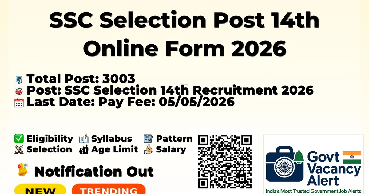 Vacancy Details Total Post : 3003Post Name: SSC Selection Post 14th Recruitment 2026 |