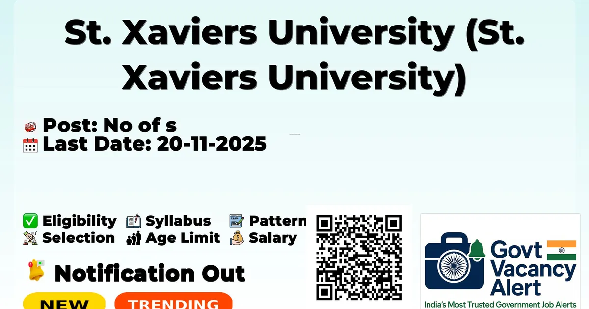 St. Xaviers University has released an official notification for the recruitment of Security Officer Posts. Interested and eligible candidates can apply Online through the official St. Xaviers University website. The last date to submit the application form is 20-11-2025. In this article, you’ll find the St. Xaviers University Security Officer Posts recruitment details, including eligibility criteria, age limit, salary structure, selection process, application steps, and direct links to the official notification and Online application form.