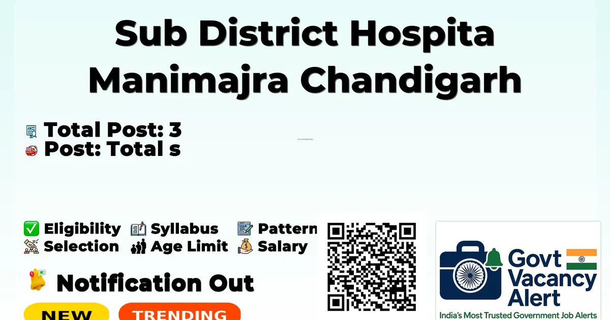 Sub District Hospita Manimajra Chandigarh (SDH Chandigarh) has released an official notification for Walk-in Interview for 3 Specialist Posts. Eligible candidates can attend the Walk-in Interview on at the SDH Chandigarh office with original documents and self-attested copies.