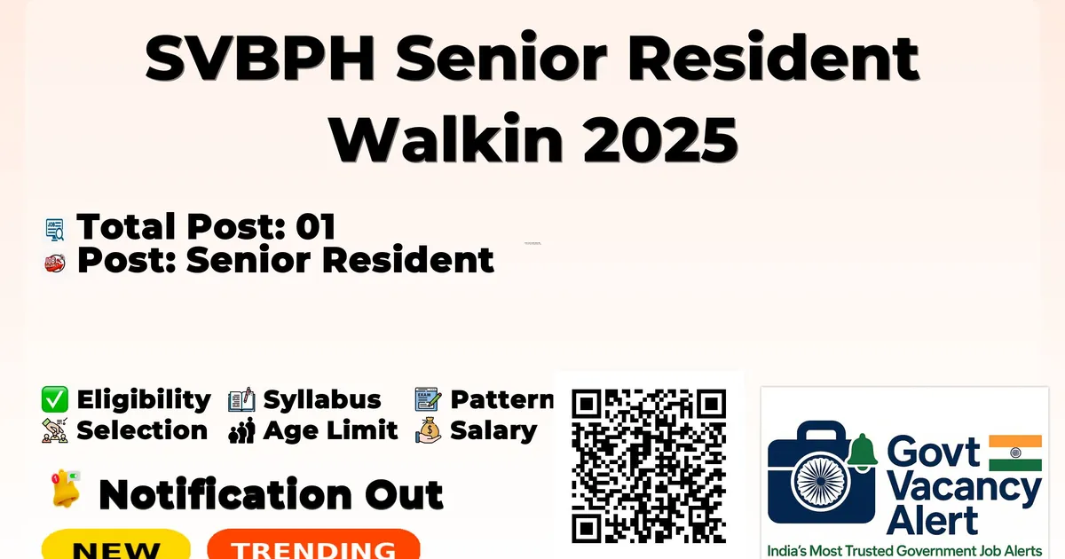 Sardar Vallabh Bhai Patel Hospital (SVBPH) Recruitment 2025 for 01 posts of Senior Resident. Candidates with MBBS, Diploma, DNB Can attend the walkin. The Walk-in on 27-10-2025. For detailed information please visit SVBPH official website, health.delhi.gov.in.