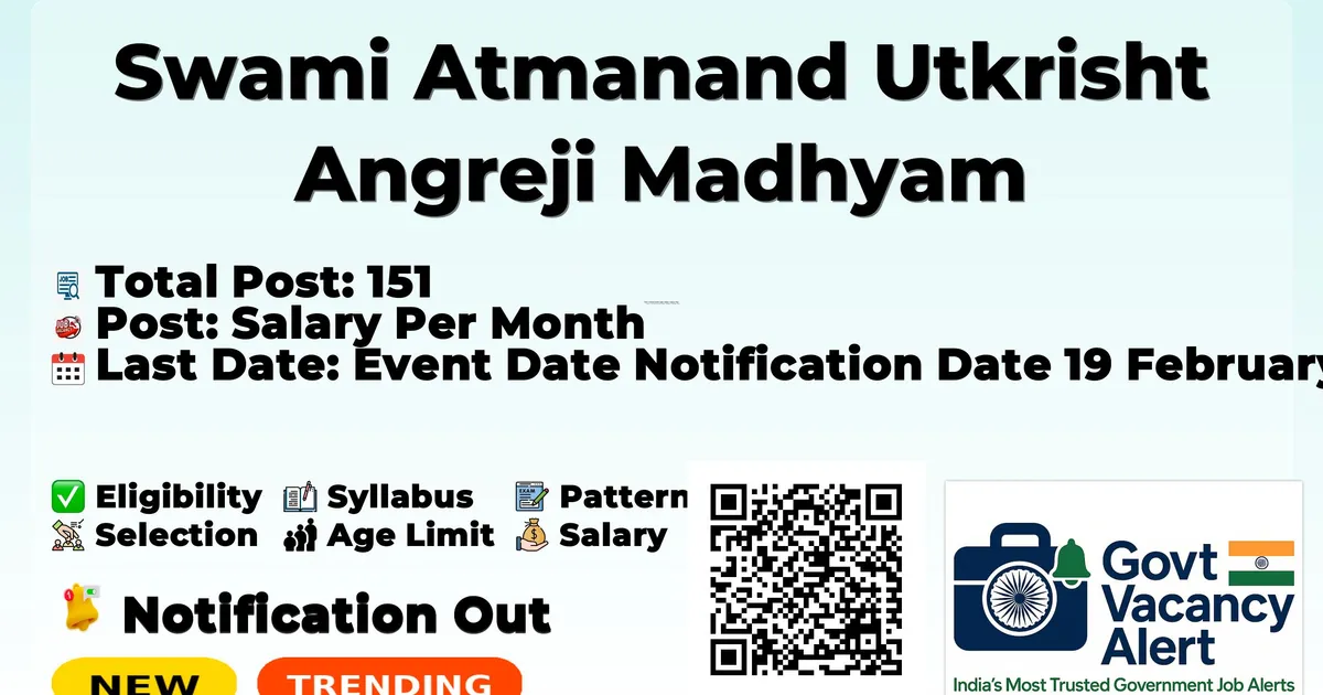 Company Name Swami Atmanand Utkrisht Angreji Madhyam Vidyalaya, Raipur Post Name Teaching and Non-Teaching Posts No of Posts 151 Advt No Education / SAEM / Contract Recruitment / 2026 / 678 Salary Rs. 15,600/- - Rs. 38,100/- Per Month Qualification Post Graduation (II Division) + B.Ed, Graduation + D.Ed/B.Ed/D.El.Ed + CG TET, 10+2 + D.Ed/D.El.Ed + CG TET Primary, Graduation with Computer Science, Graduation + B.Lib, 10+2 + Computer Diploma Age Limit Min: 21 years, Max: 35 years Last Date 20 March 2026 Apply Mode Online Job Type Contract