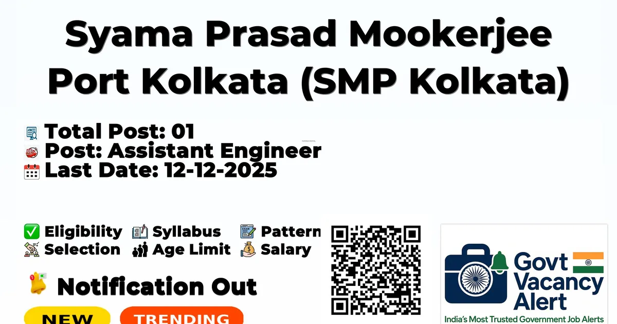 Syama Prasad Mookerjee Port Kolkata (SMP Kolkata) has released an official notification for the recruitment of 01 Assistant Engineer Posts. Interested and eligible candidates can apply Offline through the official SMP Kolkata website. The last date to submit the application form is 12-12-2025. In this article, you’ll find the SMP Kolkata Assistant Engineer Posts recruitment details, including eligibility criteria, age limit, salary structure, selection process, application steps, and direct links to the official notification and Offline application form. Join Arattai Channel Trending Govt Jobs SAIL 124 Management Trainee (Tech) Online Form 2025 KVS and NVS Online Form 2025 RRB NTPC 5,810 Online Form 2025 Bank of Baroda 2700 Apprentices Online Form 2025 Intelligence Bureau (IB) ACIO II Tech Online Form 2025 Advertisement Company Name Syama Prasad Mookerjee Port Kolkata (SMP Kolkata) Post Name Assistant Engineer No of Posts 01 Salary Rs.46,500/- Qualification Diploma Age Limit 30 to 57 years Start Date for Apply 13-11-2025 Last Date for Apply 12-12-2025 Official Website smp.smportkolkata.in Diploma in Civil Engineering from a recognized institute Having one- year successful training on Permanent Way from Zonal/Central Institute of Indian railways and having competency to issue railway track fitness certificate. Remuneration Rs. 46,500/- (consolidated per month). Minimum Age Limit: 30 Years Maximum Age limit: 57 Years Age relaxation is applicable as per rules. Starting Date for Apply: 13-11-2025 Last Date for Apply: 12-12-2025 The candidates fulfilling the above eligibility criteria and agreeable to the Terms & Conditions given below for engagement as Assistant Engineer (PW), on contract, may submit their applications (in hard copies) as per attached proforma under "Annexure-I" on or before 12.12.2025, duly super scribing on the envelope “Application for engagement as Assistant Engineer (PW), on contract" addressed to Sr. Dy. Manager – I (I&CF), Haldia Dock Complex, Syama Prasad Mookerjee Port, Kolkata, at Operational Administrative Building, Chiranjibpur, Dist.: Purba Medinipur, West Bengal - 721604, along with the following relevant documents. Official Notification PDF: Click here Official Website: Click here Join Arattai Channel: Click Here Join Telegram Channel: Click Here Join WhatsApp Channel: Click Here Sarkari Result: Click Here Download Mobile App: Click Here Jobs In West Bengal Alipurduar Asansol Bankura Barddhaman Birbhum Burdwan Dakshin Dinajpur Darjiling Durgapur Haldia Howrah Hugli Jalpaiguri Jhargram Kharagpur Koch Bihar Kolkata Malda Midnapur Murshidabad Nadia North Twenty Four Parganas Paschim Medinipur Purba Medinipur Puruliya Raniganj Siliguri South Twenty Four Parganas Uttar Dinajpur Also Read SEBI Recruitment 2025 - Officer Grade A (Assistant Manager) Vacancies - Rs 62500 to 126100 Salary - Apply Now Intelligence Bureau ACIO II Tech Recruitment 2025 - 200+ Vacancies Across India - 44900-142400 Salary - Apply Now RRB Recruitment 2025 - 2500+ JE (Junior Engineer) Vacancies - 35400 Monthly Salary - Apply Now Jobs By Education 10TH Jobs› 8TH Jobs› 12TH Jobs› Diploma Jobs› ITI Jobs› B.Tech/B.E Jobs› B.com Jobs› Any Graduate Jobs› Any Post Graduate Jobs› Bank of Baroda 2700 Apprentices Online Form 2025 RRB 2569 JE (Junior Engineer) Online Form 2025 RRB NTPC 12TH Level Online Form 2025 3058 Post BRO 542 MSW, Vehicle Mechanic Offline Form 2025 Territorial Army 1529 Soldier Offline Form 2025 ONGC 2623 Apprentices Online Form 2025 BSSC 23175 Inter Level Online Form 2025 ISRO SDSC SHAR Various Vacancy Online Form 2025 RRB NTPC 8850 Online Form 202526 1. What is the starting date to apply for SMP Kolkata Assistant Engineer 2025? Ans: Starting Date to apply is 13-11-2025. 2. What is the last apply date for SMP Kolkata Assistant Engineer 2025? Ans: Last apply date is 12-12-2025. 3. What is the Eligibility to apply for SMP Kolkata Assistant Engineer 2025? Ans: Diploma 4. What is the Maximum Age Limit to apply for SMP Kolkata Assistant Engineer 2025? Ans: 57 Years 5. How many vacancies are being recruited by SMP Kolkata Assistant Engineer 2025? Ans: Total 01 Vacancies.