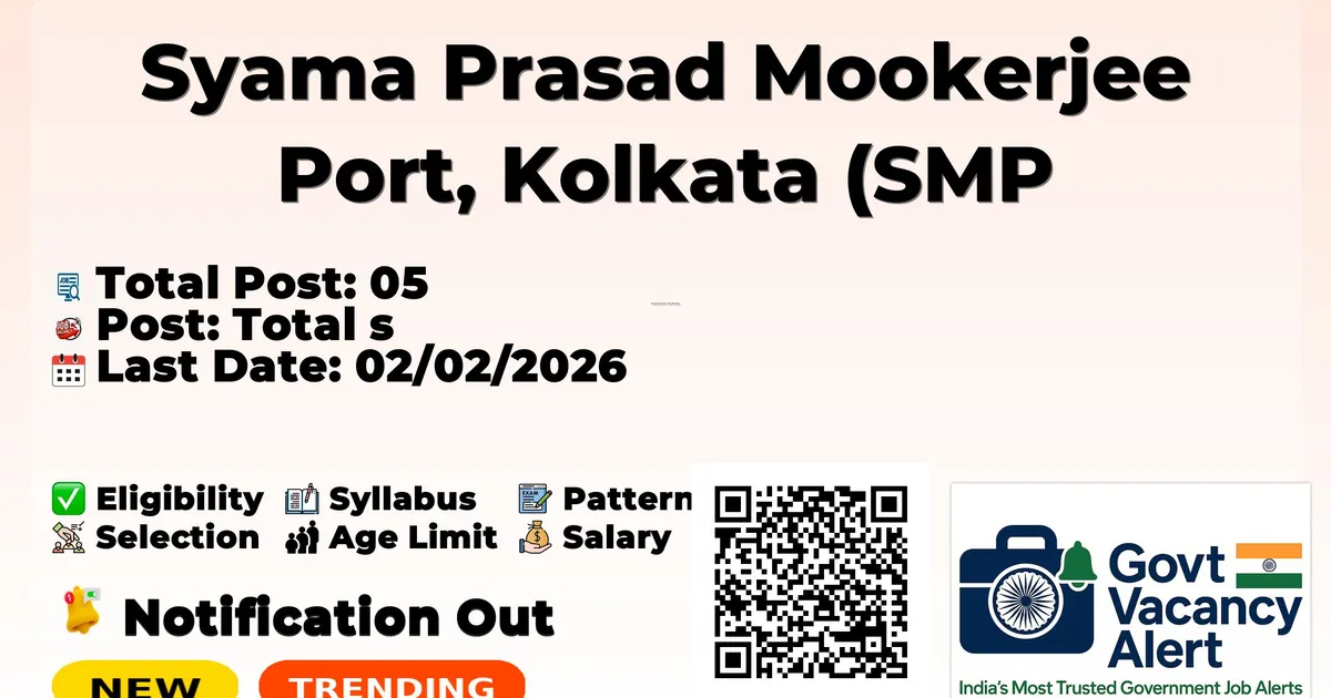 Syama Prasad Mookerjee Port Kolkata (SMP Kolkata) has released an official notification for the recruitment of 05 Senior Hydrographer Posts. Interested and eligible candidates can apply Offline through the official SMP Kolkata website. The last date to submit the application form is 02-02-2026. In this article, you’ll find the SMP Kolkata Senior Hydrographer Posts recruitment details, including eligibility criteria, age limit, salary structure, selection process, application steps, and direct links to the official notification and Offline application form.