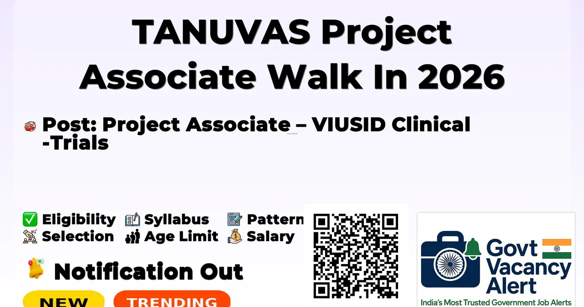 TANUVAS Project Associate Walk In 2026 — Project Associate – VIUSID Clinical Trials
