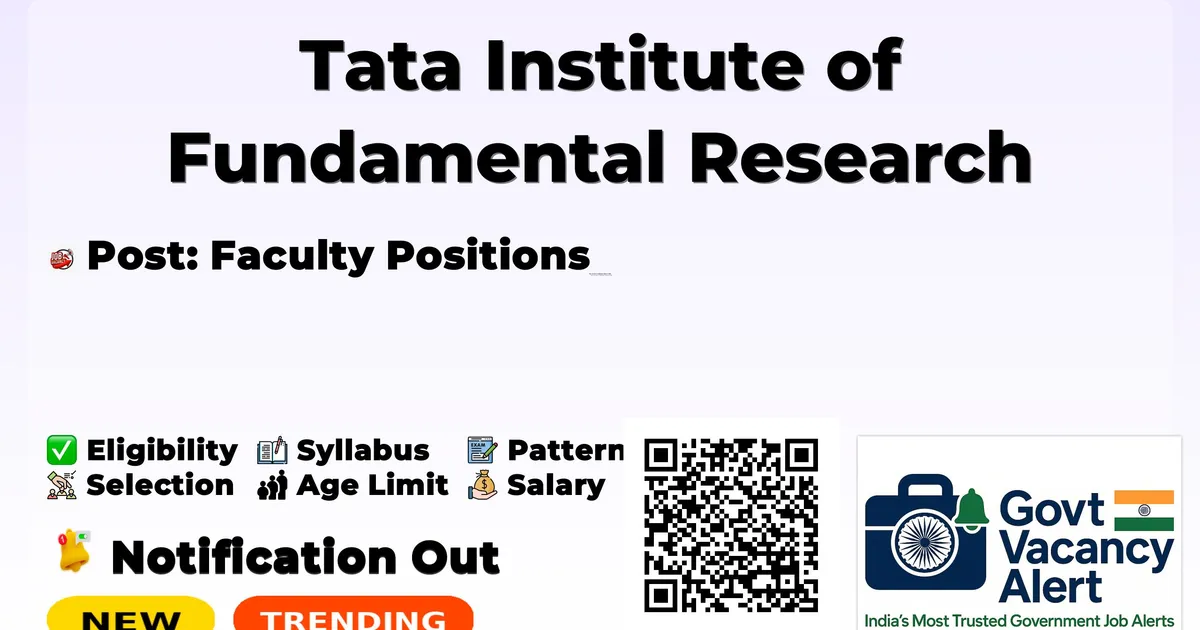 Tata Institute of Fundamental Research (TIFR) has released an official notification for the recruitment of Faculty Positions Posts. Interested and eligible candidates can apply Offline through the official TIFR website. The last date to submit the application form is 30-06-2026. In this article, you’ll find the TIFR Faculty Positions Posts recruitment details, including eligibility criteria, age limit, salary structure, selection process, application steps, and direct links to the official notification and Offline application form.