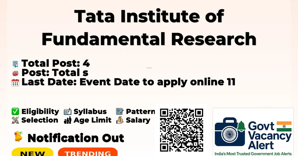 Tata Institute of Fundamental Research (TIFR) Project Scientific Officer (C) Notification 2026 has been released on the official website of TIFR. A total of 4 vacancies have been announced through the TIFR Project Scientific Officer (C) Recruitment 2026.