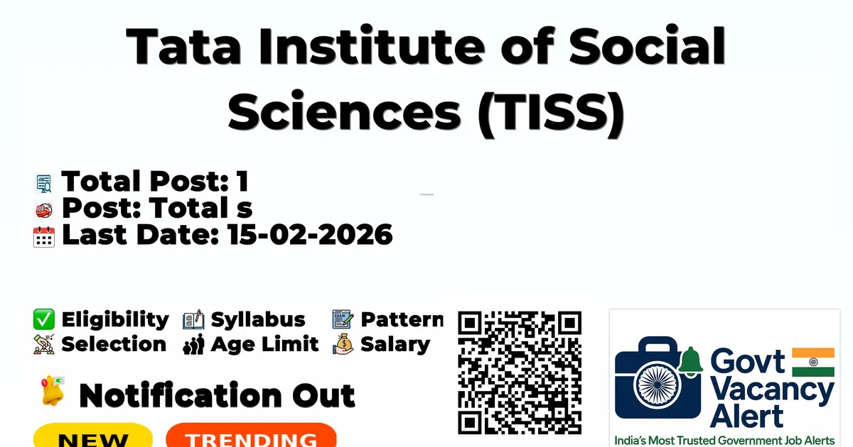 Tata Institute of Social Sciences (TISS) has released an official notification for the recruitment of 01 Consultant Posts. Interested and eligible candidates can apply Online through the official TISS website. The last date to submit the application form is 15-02-2026. In this article, you’ll find the TISS Consultant Posts recruitment details, including eligibility criteria, age limit, salary structure, selection process, application steps, and direct links to the official notification and Online application form.