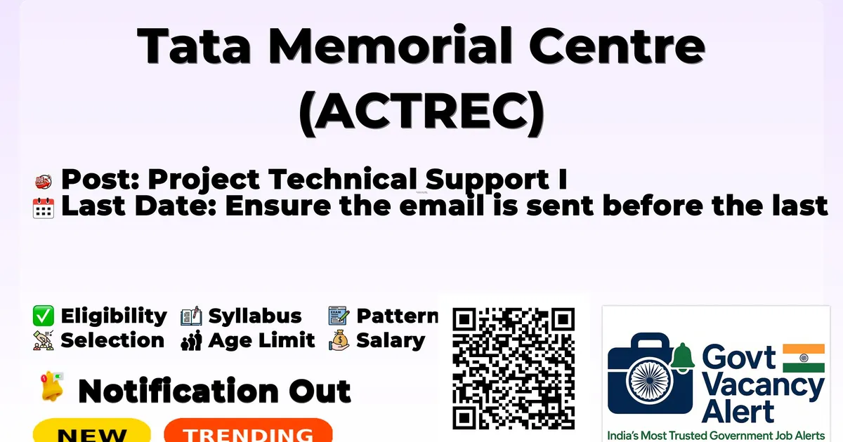 Advanced Centre for Treatment Research and Education in Cancer (TMC ACTREC) has released an official notification for the recruitment Project Technical Support I Posts. Interested and eligible candidates can apply Online through the official TMC ACTREC website. The last date to submit the application form is 24-02-2026. In this article, you’ll find the TMC ACTREC Project Technical Support I Posts recruitment details, including eligibility criteria, age limit, salary structure, selection process, application steps, and direct links to the official notification and Online application form.