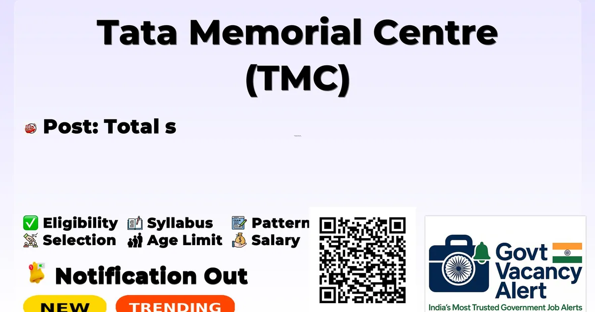 Company Name Tata Memorial Centre (TMC) Post Name Adhoc Assistant Security Officer Salary Rs. 35,400/- per month (Consolidated) Qualification Ex-servicemen: 15 years of service in relevant ranks or Graduation equivalent Civilians: Graduate with NCC 'C' and 5 yrs Security experience Age Limit Up to 35 years Walk in Date 12-12-2025 Official Website tmc.gov.in