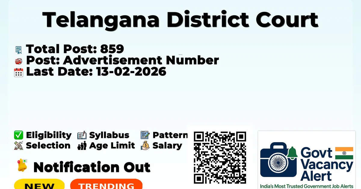 Telangana District Court has released an official notification for the recruitment of 859 Steno,Typist and Other Posts. Interested and eligible candidates can apply Online through the official Telangana District Court website. The last date to submit the application form is 13-02-2026. In this article, you’ll find the Telangana District Court Steno,Typist and Other Posts recruitment details, including eligibility criteria, age limit, salary structure, selection process, application steps, and direct links to the official notification and Online application form.