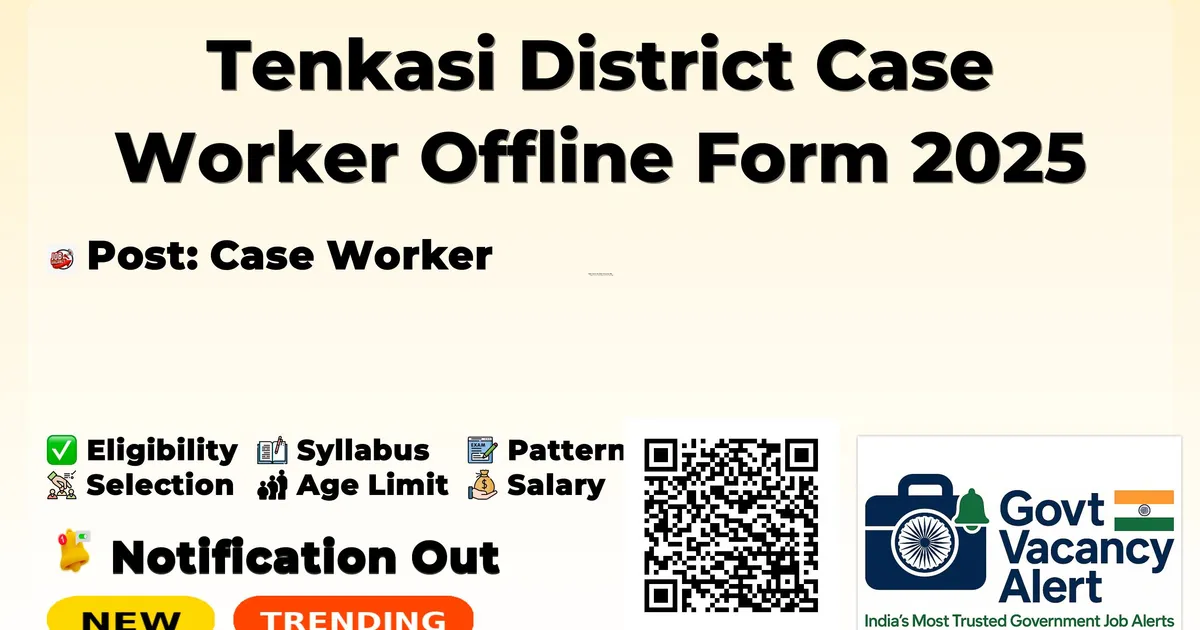 Tenkasi District has released an official notification for the recruitment of 01 Case Worker Posts. Interested and eligible candidates can apply Offline through the official Tenkasi District website. The last date to submit the application form is 15-12-2025. In this article, you’ll find the Tenkasi District Case Worker Posts recruitment details, including eligibility criteria, age limit, salary structure, selection process, application steps, and direct links to the official notification and Offline application form.