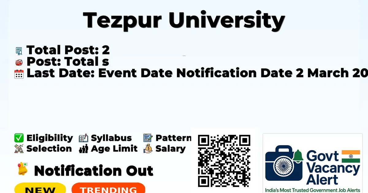 Tezpur University Recruitment 2026 has released the official notification for 2 Assistant Professor posts, inviting applications from eligible candidates. This recruitment provides an excellent opportunity for candidates seeking education jobs.