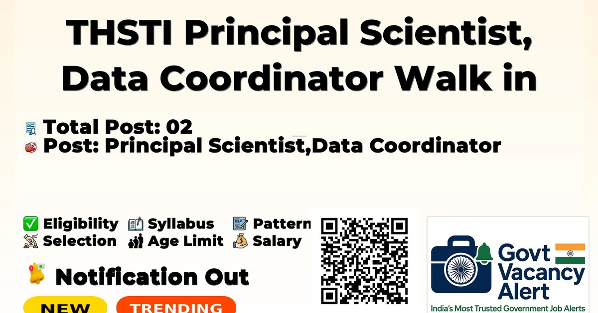 Translational Health Science and Technology Institute (THSTI) Recruitment 2025 for 02 posts of Principal Scientist, Data Coordinator. Candidates with BCA, B.Sc, DNB, Any Post Graduate, MCA, MS/MD Can attend the walkin. The Walk-in starts from 30-09-2025, and ends on 07-10-2025. For detailed information please visit THSTI official website, thsti.in.