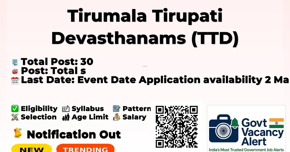 Tirumala Tirupati Devasthanams (TTD) has released an official notification for the recruitment of 30 Professor, Associate Professor, Assistant Professor, Medical Officer, Resident Doctor Posts. Interested and eligible candidates can apply Offline by sending the application form to the official address. The last date to submit the application is 16-03-2026.