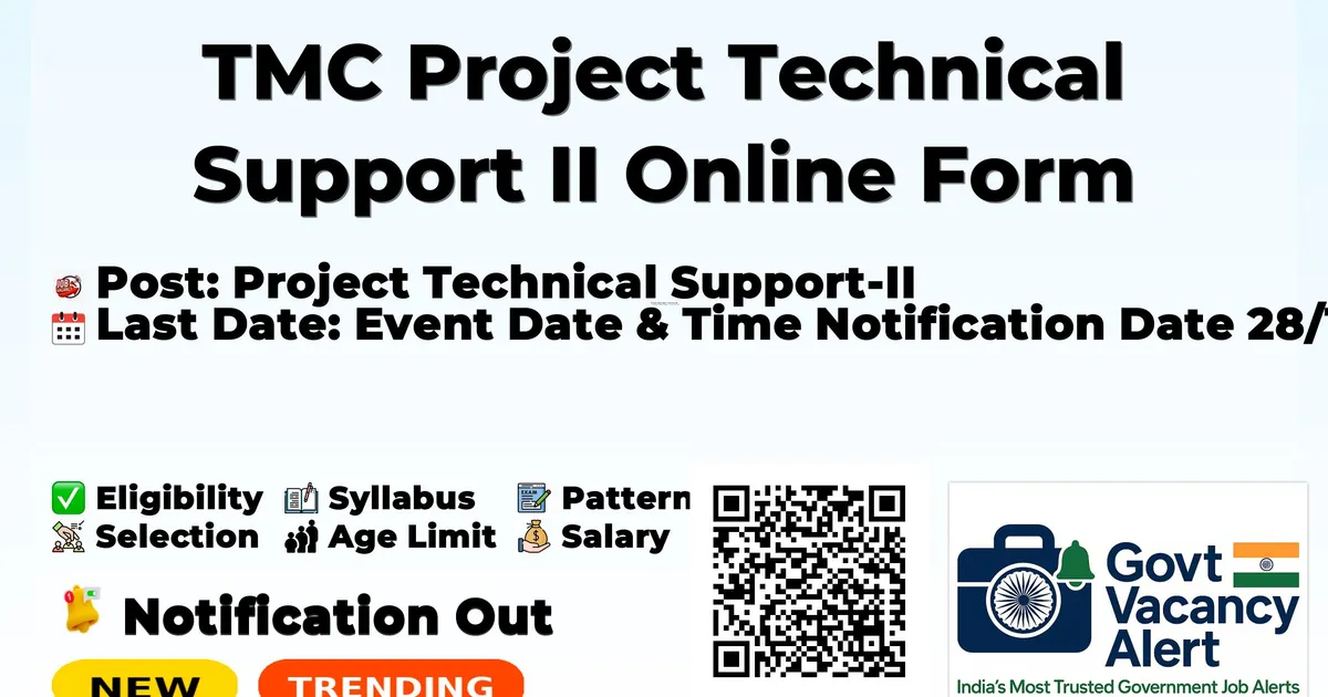 Tata Memorial Centre (TMC) has released an official notification for the recruitment of 01 Project Technical Support II Posts. Interested and eligible candidates can apply Online through the official TMC website. The last date to submit the application form is 12-12-2025. In this article, you’ll find the TMC Project Technical Support II Posts recruitment details, including eligibility criteria, age limit, salary structure, selection process, application steps, and direct links to the official notification and Online application form.