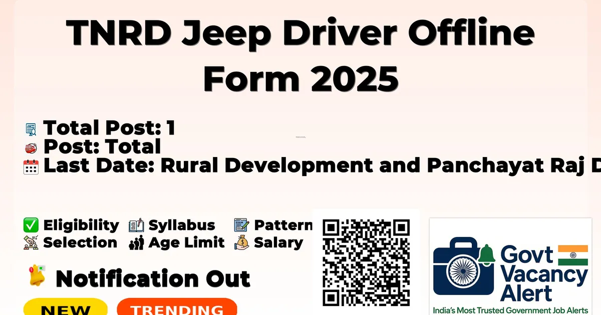 Last Date: Rural Development and Panchayat Raj Department TN (TNRD) Jeep Driver Vacancy 2025 WWW.FREEJOBALERT.COM Download Mobile App Application Fee Rs.50/- TNRD Recruitment 2025 Important Dates Starting Date for Apply: 29-10-2025 07-11-2025 TNRD Recruitment 2025 Age Limit Minimum Age Limit: 18 Years Maximum Age limit: 42 Years Age relaxation is applicable as per rules. Qualification Candidates Should Posses 8TH TNRD Jeep Driver Recruitment 2025 Vacancy Details Post Name Total Jeep Driver 1 Interested Candidates Can Read the Full Notification Before Apply Important Links Notification Click here Official Website Click here Free Mock Test Click Here Sarkari Result Click Here Join Telegram Channel Click Here Download Mobile App Click Here Join WhatsApp Channel Click Here