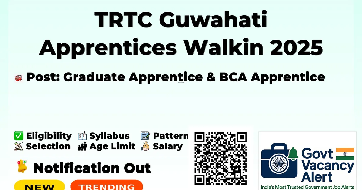Tool Room and Training Centre Guwahati (TRTC Guwahati) Recruitment 2025 for 06 posts of Apprentices. Candidates with Any Graduate, BCA Can attend the walkin. The Walk-in starts from 02-12-2025, and ends on 03-12-2025. For detailed information please visit TRTC Guwahati official website, trtcguwahati.org.